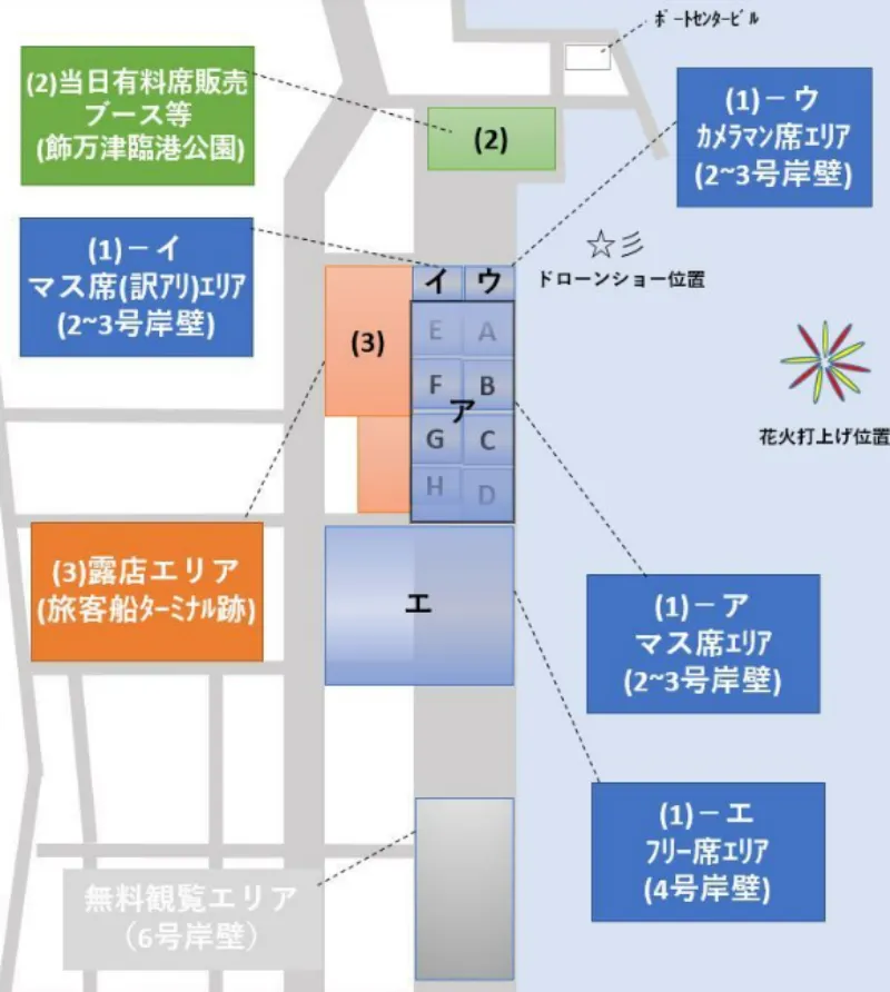 | フリー席(4号岸壁) | 1,000円 (前売り850円) | 1名 |